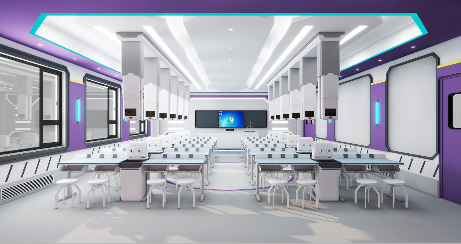 智能創(chuàng)新吊裝實驗室,是為解決當今理化生實驗室在建設和改造過程中面臨的功能升級難、地面施工難、空間單一等難題而研發(fā)的創(chuàng)新型實驗室。實驗室配備的智能吊裝系統(tǒng)是將實驗室所需水、電、光、氣、網(wǎng)絡等媒介全部基于頂部,使空間變得更加靈活,為學科教室的實驗應用提供了最高程度的靈活性,能滿足實驗室簡潔美觀、安全環(huán)保、功能完備的特點和需求,更便于改造和檢修。